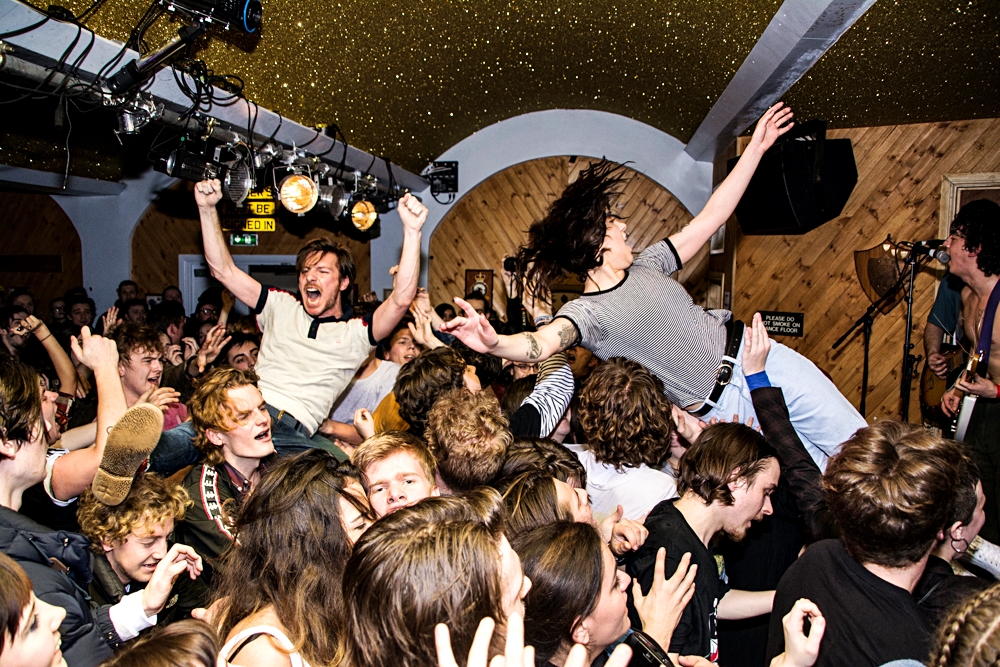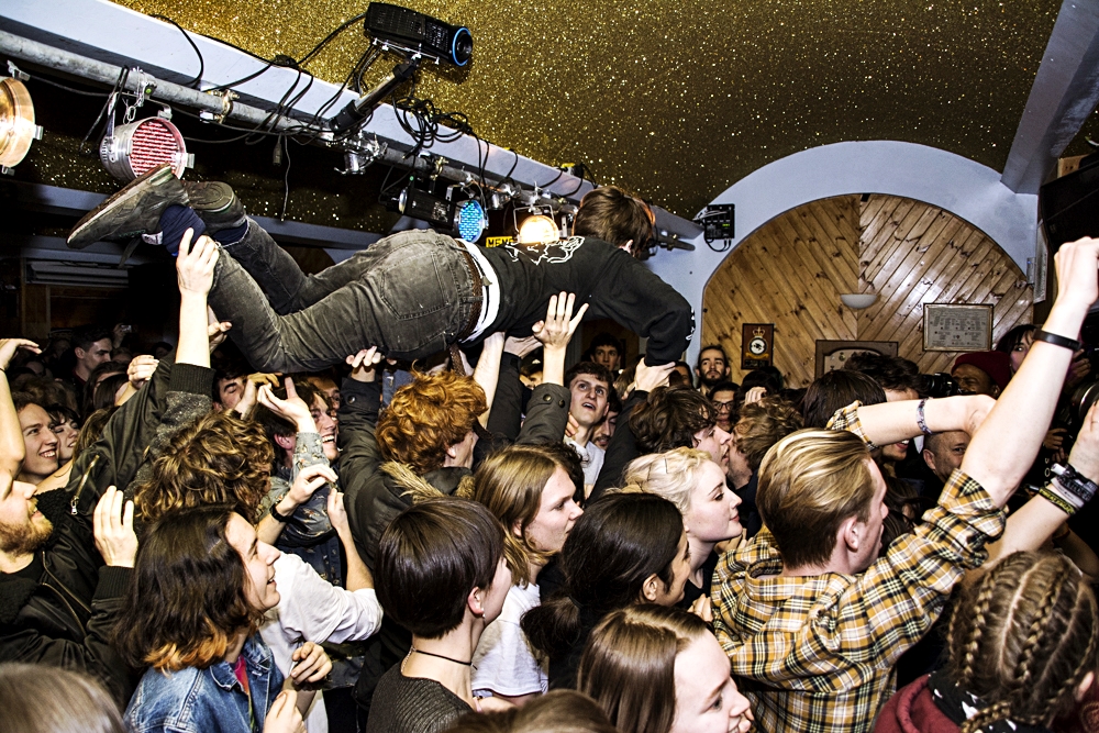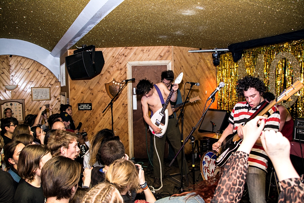 The band who replies with “We don’t know” to a question “Why are you touring so much?” payed London a visit. Again. Frankly, it hasn’t been long since we saw them destroy Scala last November. This time however, Twin Peaks came over to play an intimate, 3 pm let’s add, set at Hackney’s Moth Club.