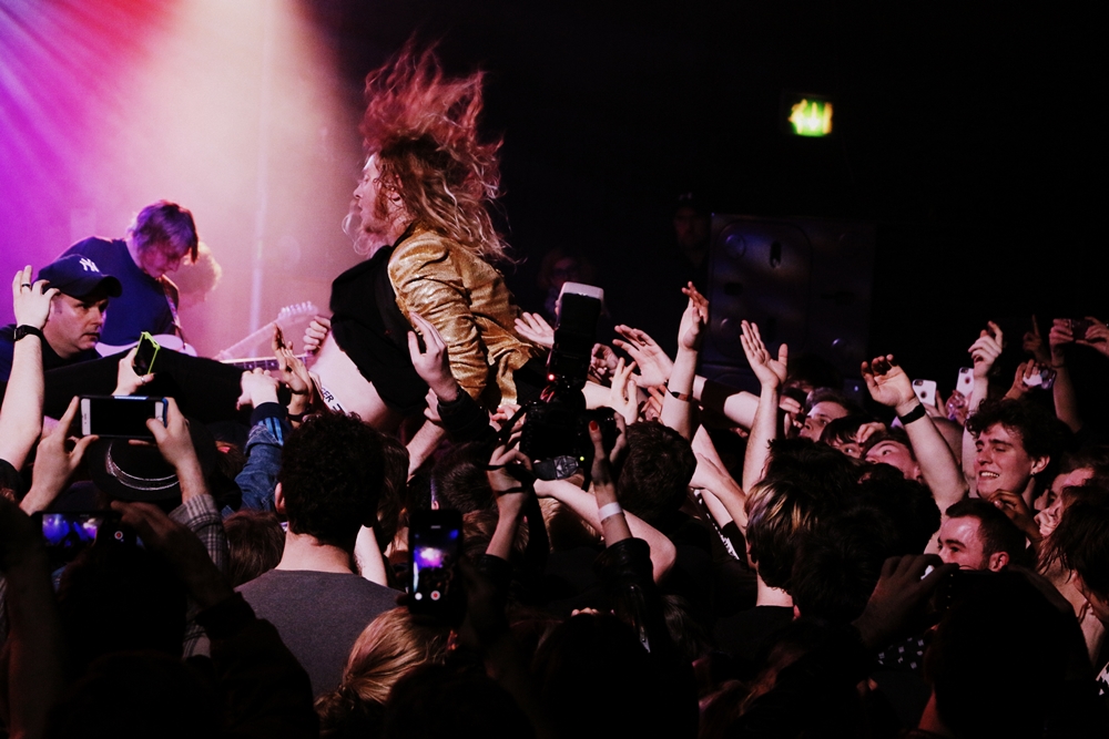 Letting the anticipation and energy soar the air for a second, they soon play up “another one from our massive hype days”. “Massive hype days?” a guy behind me asks, “Well, that’s what he says”.