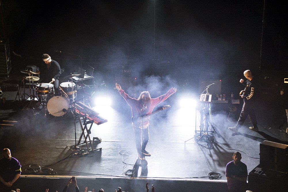 If the first song kept a few individuals standing still or sitting on the couches on the balcony levels, the old-school Bad, Bad, Bad brings along the ultimate dancing vibes. What’s more, frontman Paul Klein makes a brave move, judging on the fact it’s just the beginning of the set, and stagedives into and onto the eager crowd. Not that anyone complains, naturally.