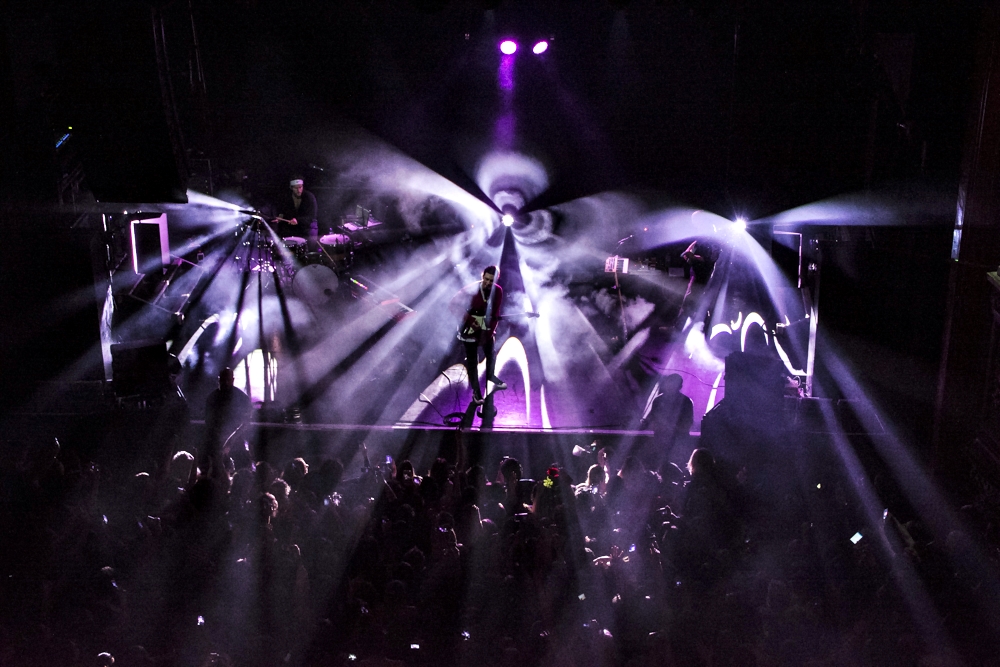 The lights dim out and it takes seconds before the audience bursts into the loud screaming. A vital element of LANY‘s aesthetic – a red rose – can be spotted among the crowd, being waved over our heads as a beautiful welcome gesture to three figures slowly emerging on stage.