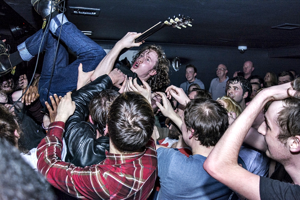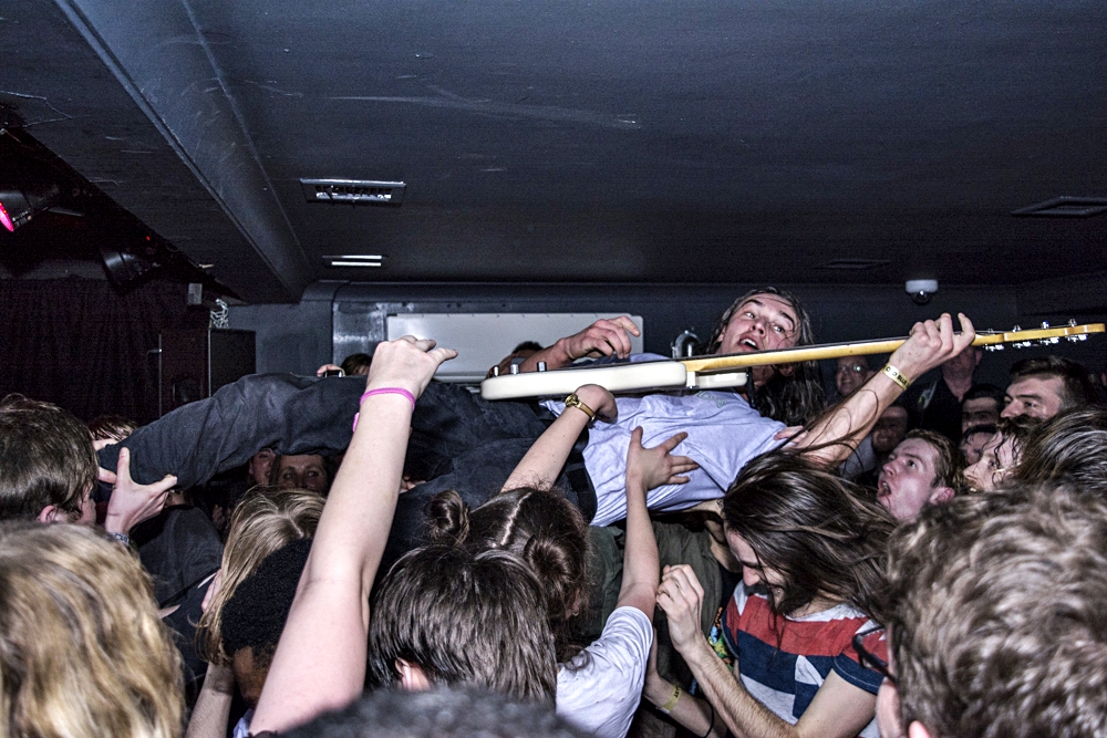 “London, it’s been a pretty good night. And I know it because I feel like I’m gonna be sick, and you make me sick. Recently, a few venues have been closing down, but this is amazing. This is fucking relaunching!”, and on that note Peter and James take their turns as they vanish in a sea of restless bodies, all captured in a giant mosh pit.