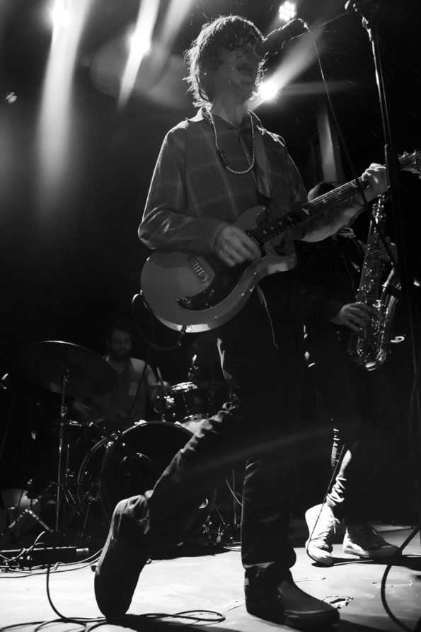 Throughout the show, the crowd are kept on their toes. The unpredictability of the performance is thrilling and captivating, and while he admittedly may take inspiration from the likes of Chuck Berry, Little Richard and Elvis, all the while allowing you to think you’re witnessing something totally original. And in a sense, you are – Furman does not look like your typical 50’s Rockstar. Tonight, he wears makeup and a lit-up necklace, although he often goes on stages wearing dresses or skirts, so this outfit is fairly downplayed.