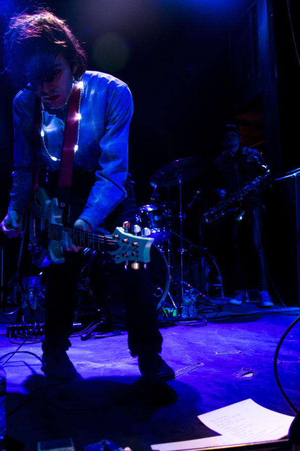 Throughout the show, the crowd are kept on their toes. The unpredictability of the performance is thrilling and captivating, and while he admittedly may take inspiration from the likes of Chuck Berry, Little Richard and Elvis, all the while allowing you to think you’re witnessing something totally original. And in a sense, you are – Furman does not look like your typical 50’s Rockstar. Tonight, he wears makeup and a lit-up necklace, although he often goes on stages wearing dresses or skirts, so this outfit is fairly downplayed.