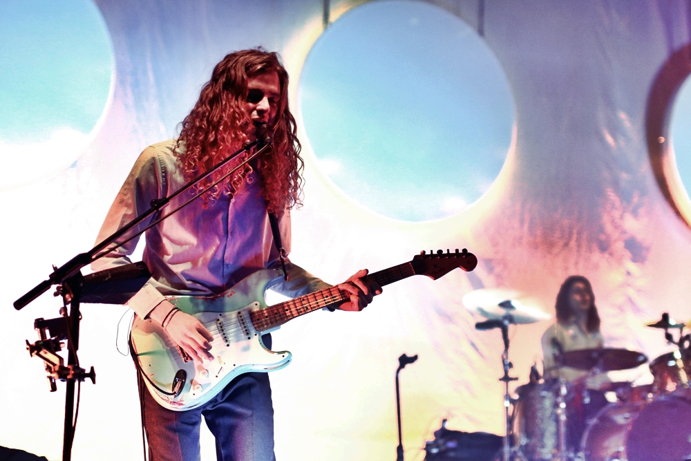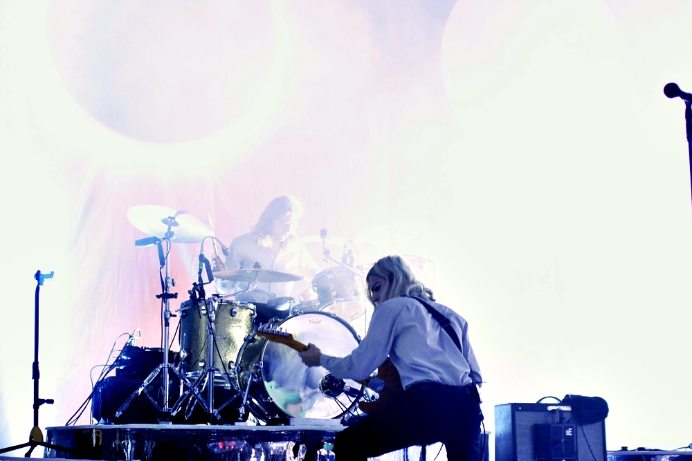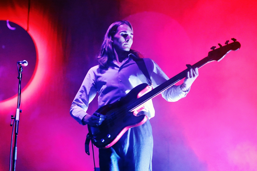 Throughout the set, the connection between Haydn Evan’s striking drum-work and fluid bass-lines of Dom Cordell is astonishing. Enhancing the feverish guitar-melodies, the co-existence proves crucial in balancing the vivid soundscape of Sundara Karma.