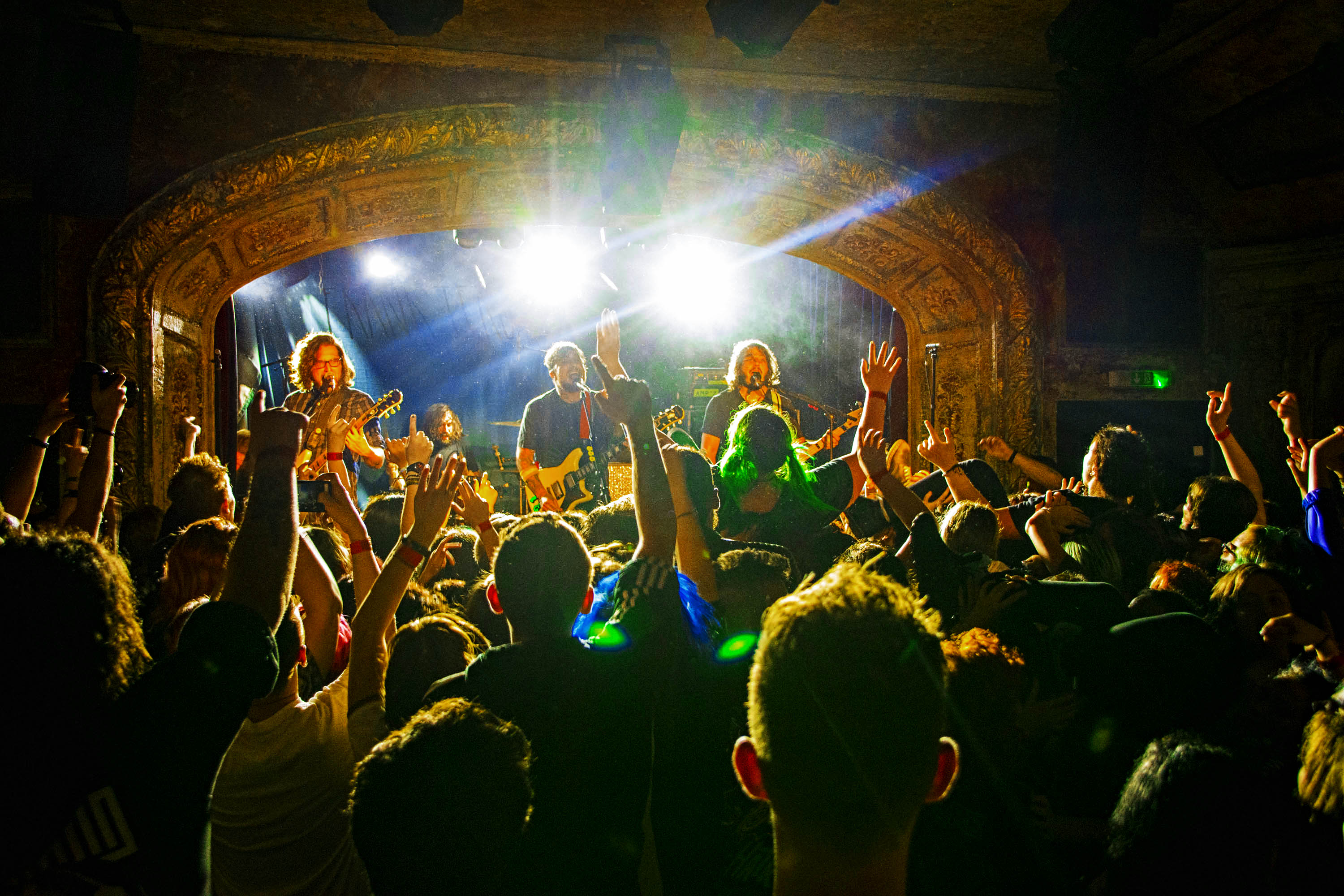It’s been an emotional and bumpy ride for sure, and only as they’re about to hit the last chorus I spot a guy in the middle of the crowd who has been incessantly picking people up so they could crowdsurf. Well done mate. We could barely see the band onstage due to the constant invasions.