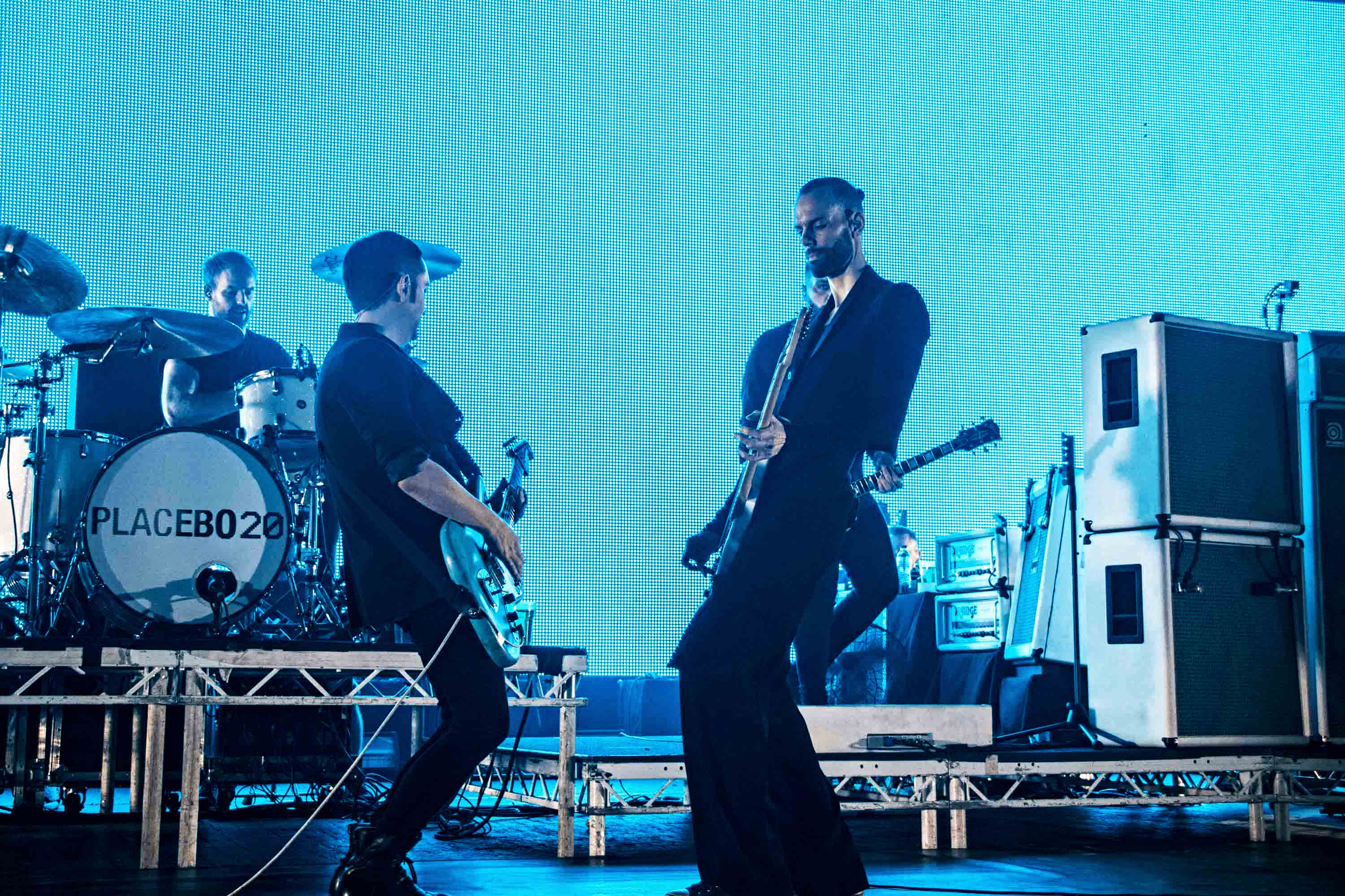 Covered in blue light, Placebo emerge on stage to the sound of loud screams as they continue with striking guitars and haunting beat of Pure Morning. Now duo, the band sets a grandiose and theatrical ambience, all dressed in black with Brian Molko’s signature dark eyeliner. The crowd mirrors his cult androgynous attire perfectly.