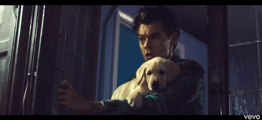 Now, the video is out and it’s a concoction of everything nice. The floral Gucci suites are still in fashion, and there’s cake. Though, the best moment is Harry Styles bursting through the door holding a puppy, a moment that’ll be gif-ed faster than you can say ‘Tumblr’.