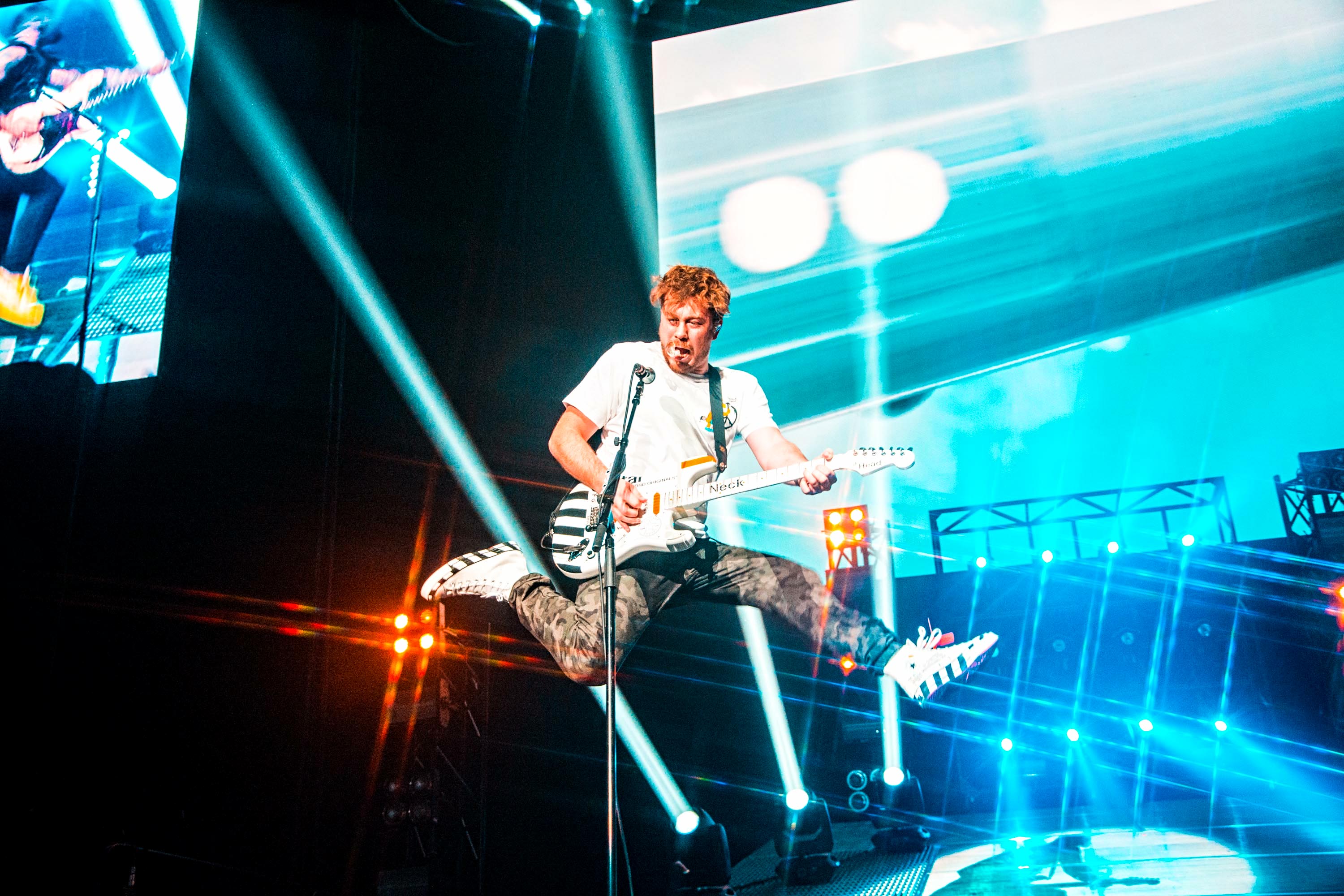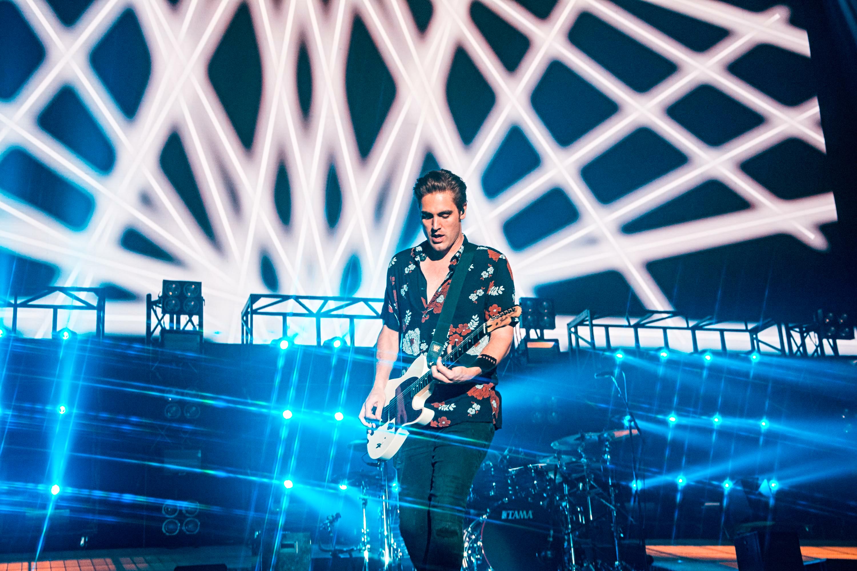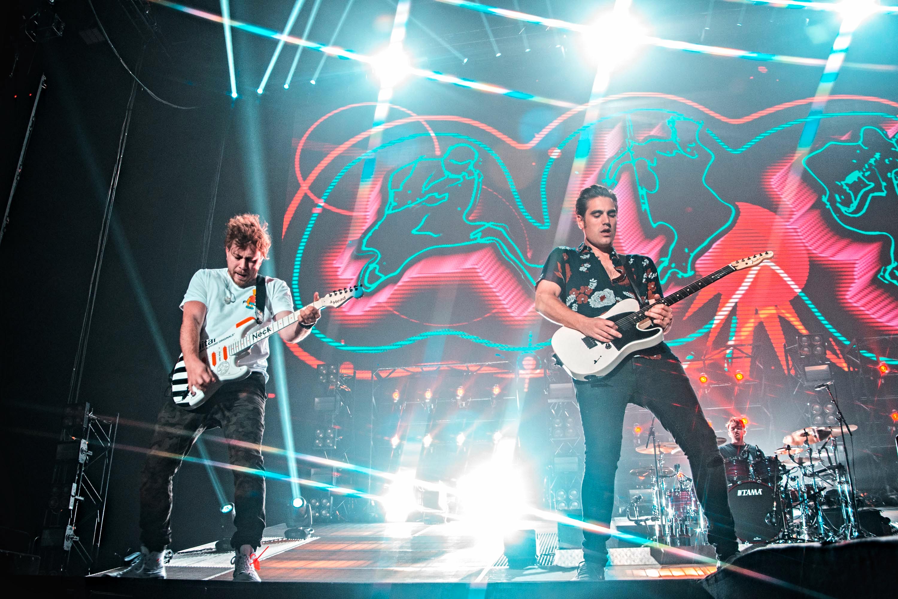 With massive clocks counting down the time to the year 1985 and 2002 throughout the set, the songs taken from their certified multi-platinum sophomore album, A Present For Everyone, are met with loud screams. Air Hostess, Falling For You and the absolute hit Crashed The Wedding, all are a great reminder of how sleek their three-way vocal harmonies sound in the live setting. Following the blazing Thunderbirds Are Go, James sits down behind the piano while Charlie switches to an acoustic guitar, saying: “We made this album for you guys”. As All My Friends hits us with its sentimental hooks, the pensive mood sinks in, only to be magnified by a cover of Free Fallin’ by Tom Petty. What a moment this is.